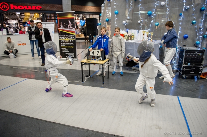 Najmłodsi zawodnicy UKS Hajduczek, którzy od kilku miesięcy trenują szermierkę, mieli okazję do współzawodnictwa. W sobotnie południe (28.11.2015 r.) licznie zgromadzili się w Galerii Warmińskiej, by wziąć udział w I Turnieju Szermierczym o Puchar Galerii Warmińskiej. Dla nich była to okazja do współzawodnictwa, a dla licznych widzów możliwość poznania szermierki.