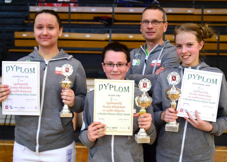 – Oskar jest ambitnym zawodnikiem, walczy zawsze do końca. Dziś wytrzymał presję i w pięknym stylu, pokazując ładną szermierkę, pewnie wygrał turniej. Oczywiście gratuluję wszystkim swoim zawodnikom, którzy dziś pokazali się na konińskich planszach szermierczych – mówił po finale trener Adam Sobczyk.
